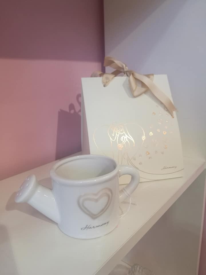 Il porta piante / vaso a forma di annaffiatoio è realizzato in ceramica, decorato solo da un cuore sul fronte e dalla scritta del marchio aziendale "Harmony".