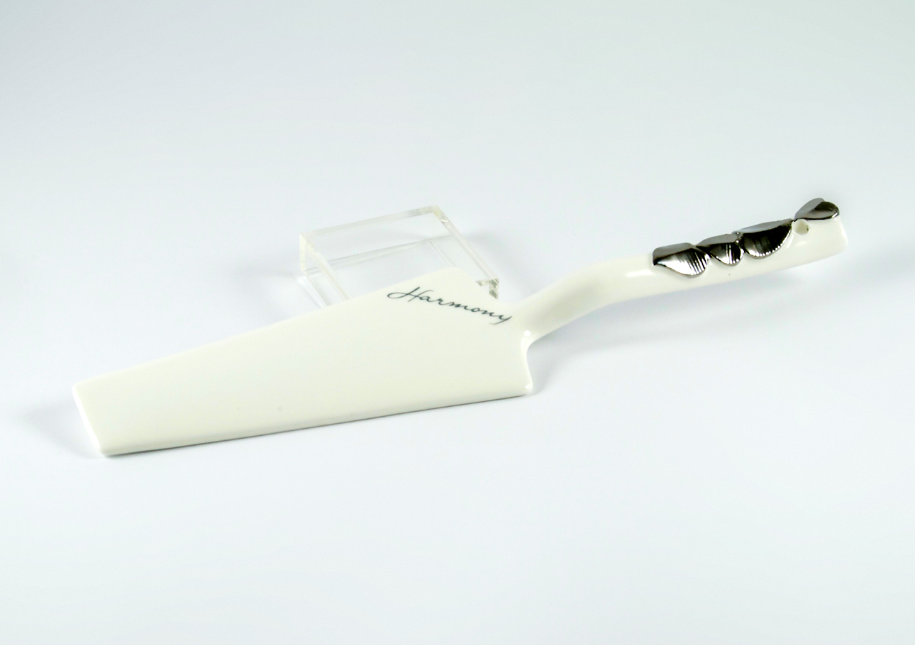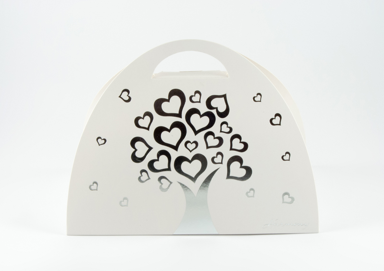 PALA TORTA CON CUORI SILVER PORCELLANA CORREDATA DI BOX BORSETTA CON ALBERO DELLA VITA SILVER MISURE: CM. 6 x 25.8 x 2 h